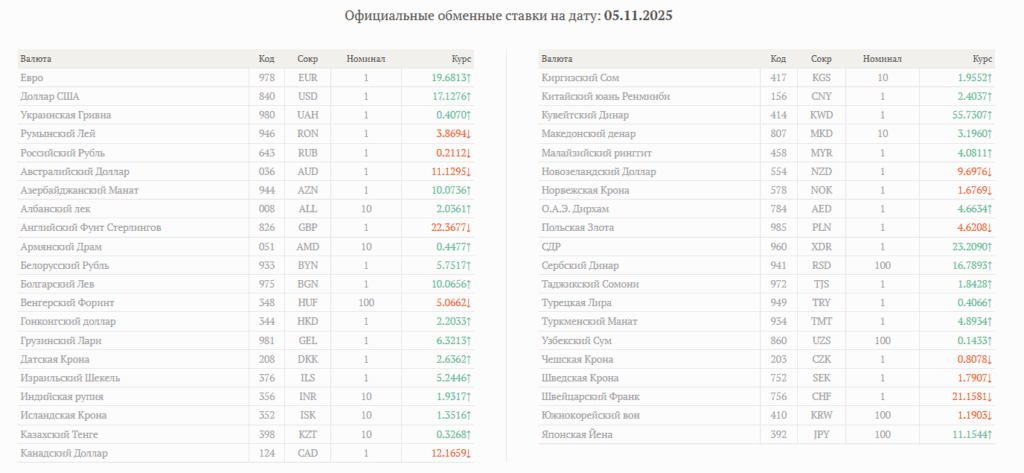 Иллюстративное фото из открытых источников Национальный банк Молдовы представил официальный обменный курс валют на среду, 5 ноября.