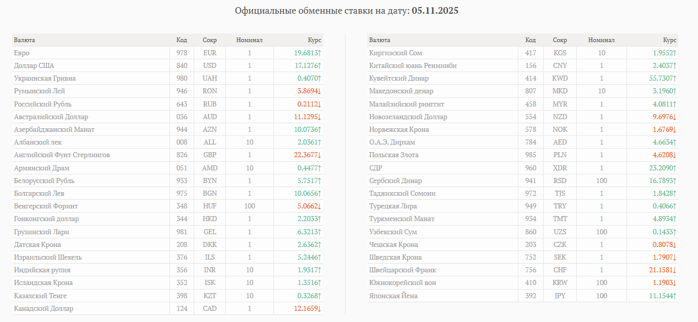 Иллюстративное фото из открытых источников Национальный банк Молдовы представил официальный обменный курс валют на среду, 5 ноября.