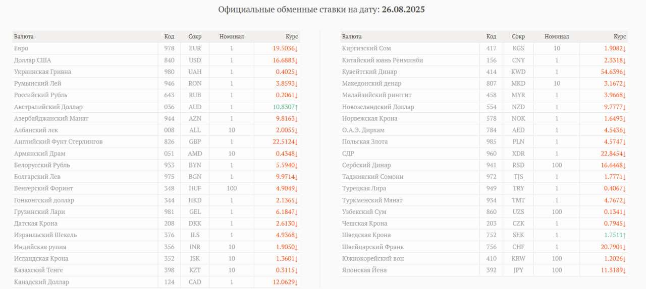 Иллюстративное фото из открытых источников                Национальный банк Молдовы представил официальный обменный курс валют на вторник, 26 августа.