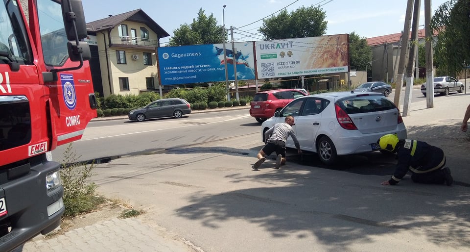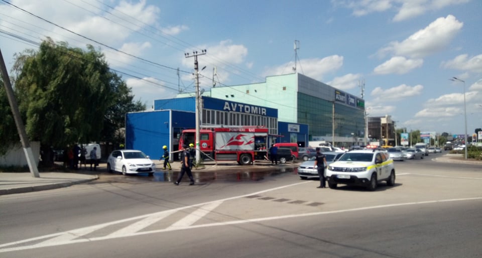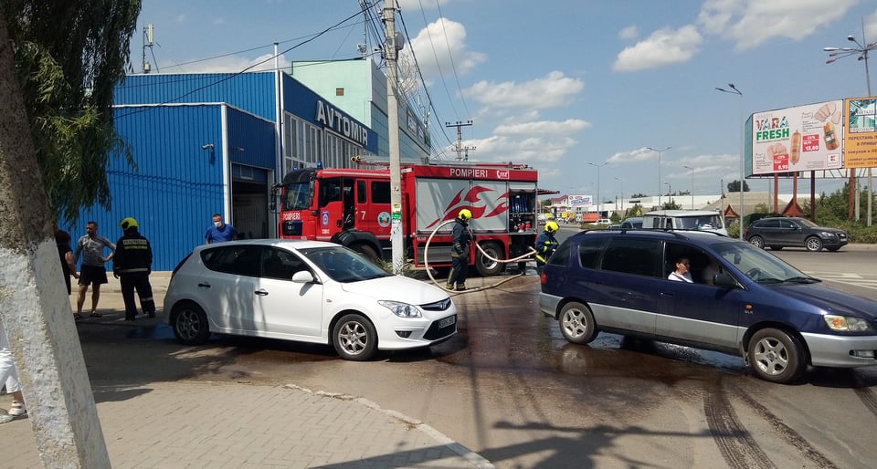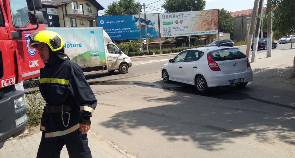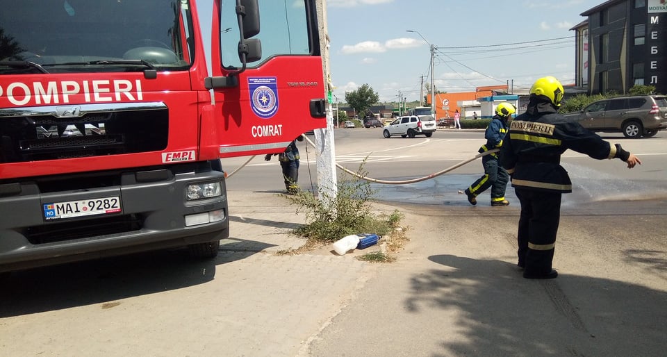 (ФОТО) Спасатели из Комрата предотвратили пожар. Из авто на трассу вылилось топливо