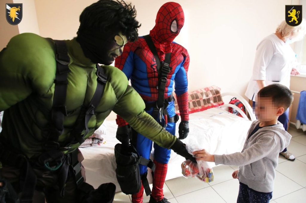 (ФОТО) Спецоперация «Fulger»: полицейские в костюмах супергероев навестили детей в столичной больнице