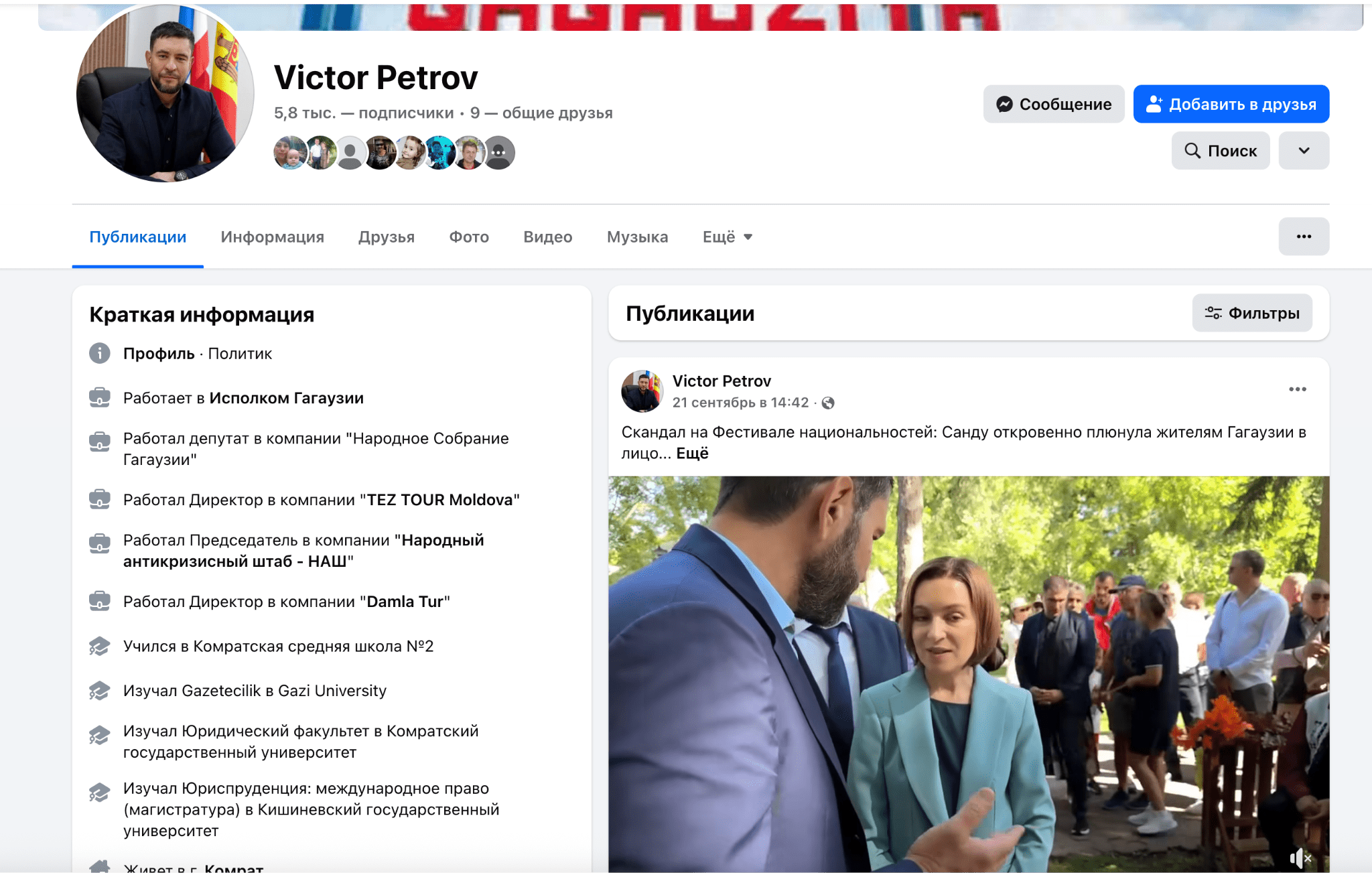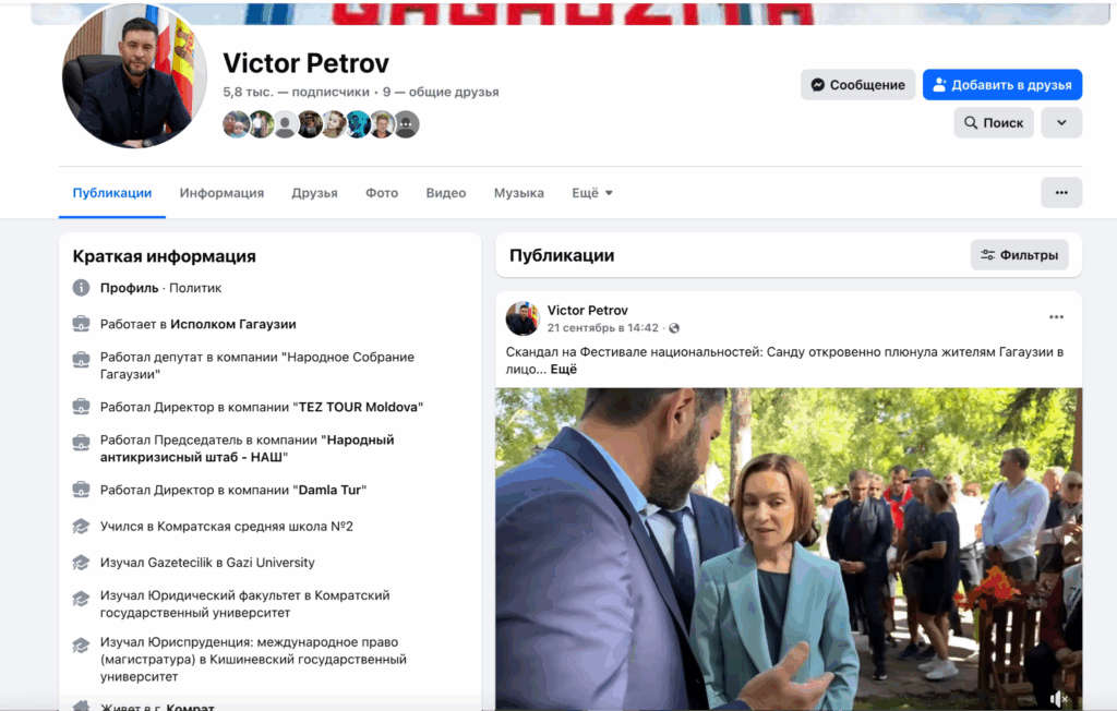 Второй заместитель башкана Виктор Петров тоже никак на выборы не отреагировал. Последний его пост на фейсбуке датирован 21 сентября, когда он провоцировал и вступил в перепалку с Майей Санду на этнофестивале.
