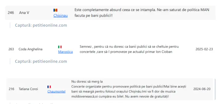 В то время как мэр Ион Чебан заявлял, что мэрия Кишинева организует концерты для диаспоры именно потому, что существует запрос на такие мероприятия, в 2024 году группа представителей диаспоры создала петицию, в которой заявляла, что «нас достала политика MAN, финансируемая за счет публичных денег!»