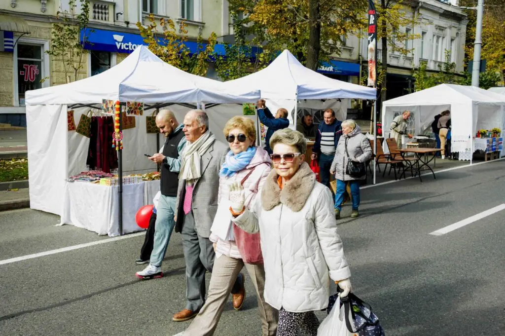 Перед собором и вдоль бульвара Штефана чел Маре развернулась ярмарка изделий народных мастеров. На прилавках — керамика, сотканные вручную ковры, деревянные игрушки, домашний мед и национальные рубашки/блузы (ия).