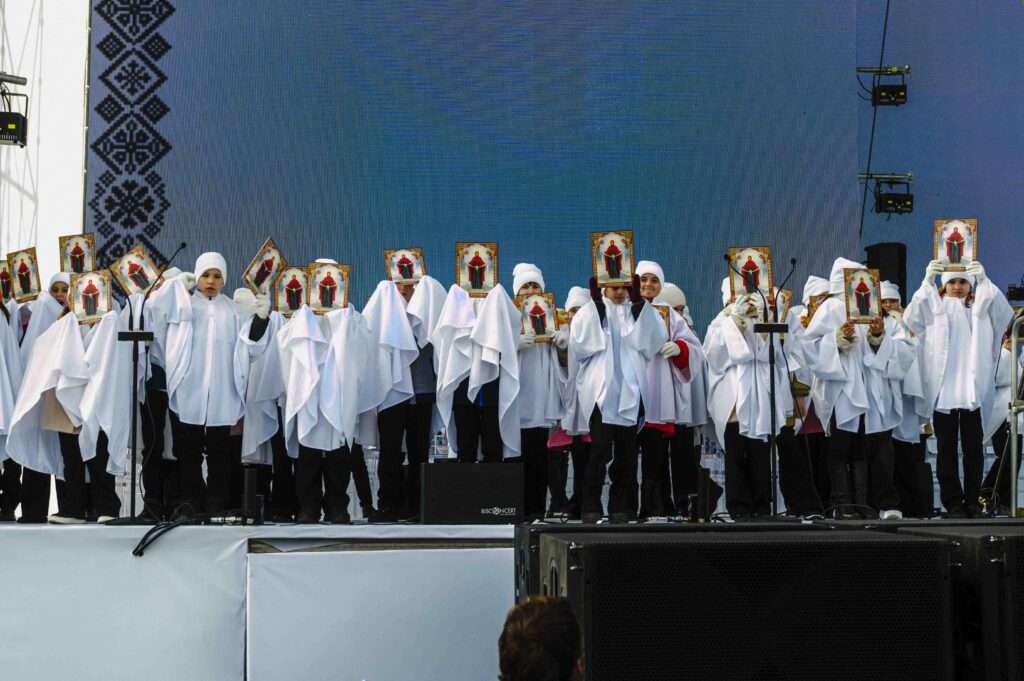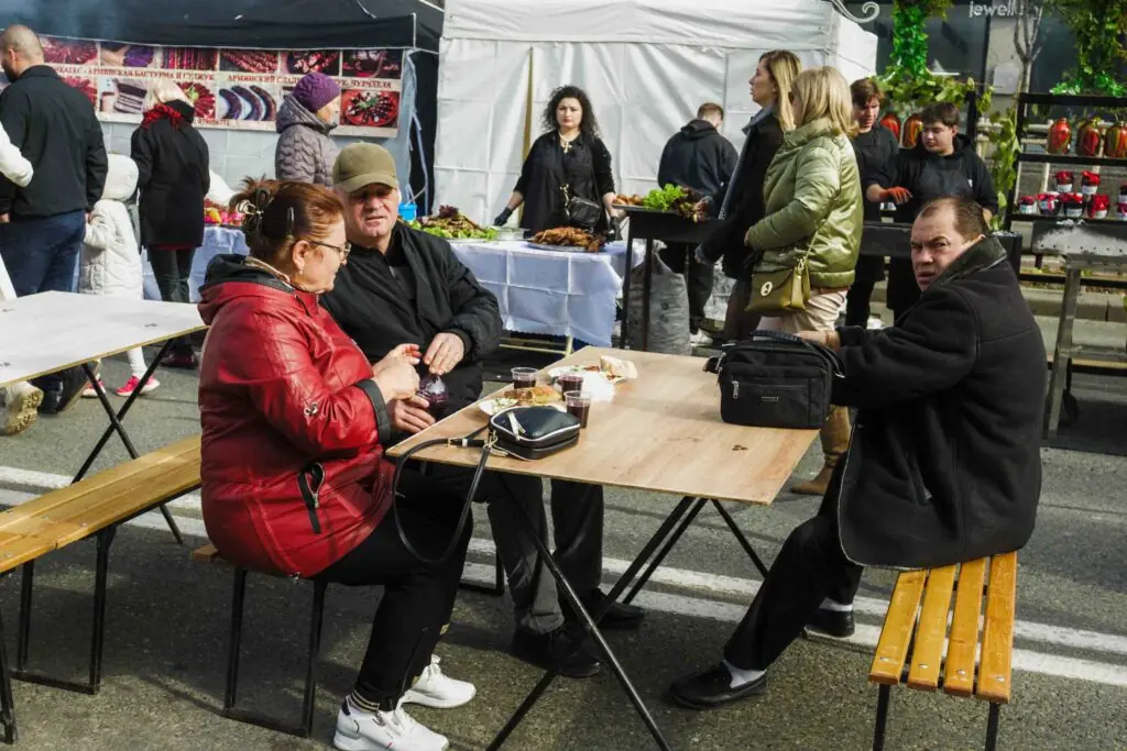 Ближе к вечеру на сцену вышли братья Авдаховы, Зинаида Жуля и другие фолк-исполнители. Люди танцевали прямо на площади, снимая все на телефоны, а воздух наполнился дымом шашлыков из соседних рядов. Праздничное настроение сохранялось, даже когда солнце опустилось за кафедральный купол.