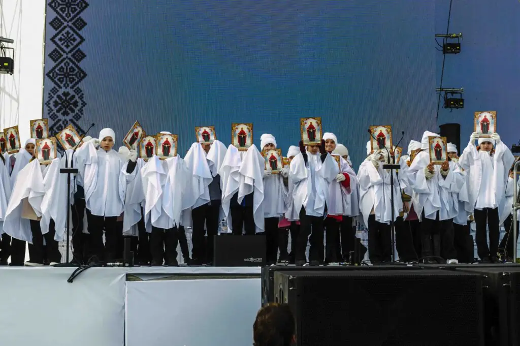 На главной сцене праздник открыл симфонический оркестр, после чего звучали академический хор и фольклорные ансамбли.
