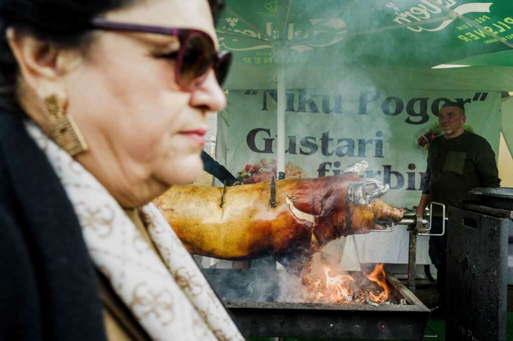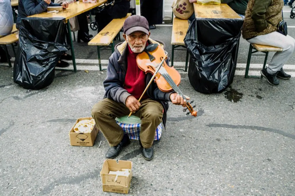 После службы к собору начали стекаться и нерелигиозные горожане, и к десяти утра площадь Великого Национального собрания уже наполнилась звуками оркестра и запахом выпечки, шашлыка и народной кухни.