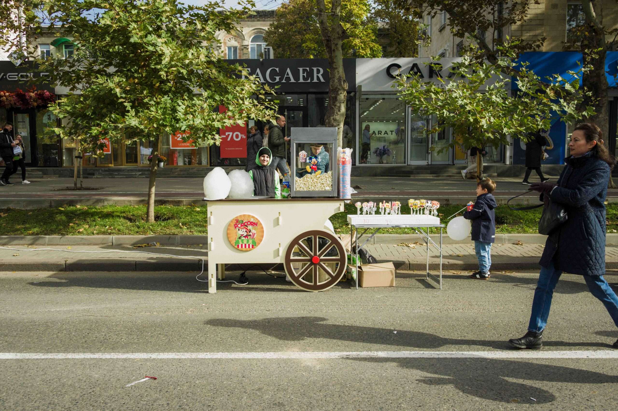 Рядом, на участке между улицами Пушкина и Александри, открылся длинный фудкорт: от плацинд и мамалыги до кофе в песке и варёной кукурузы.