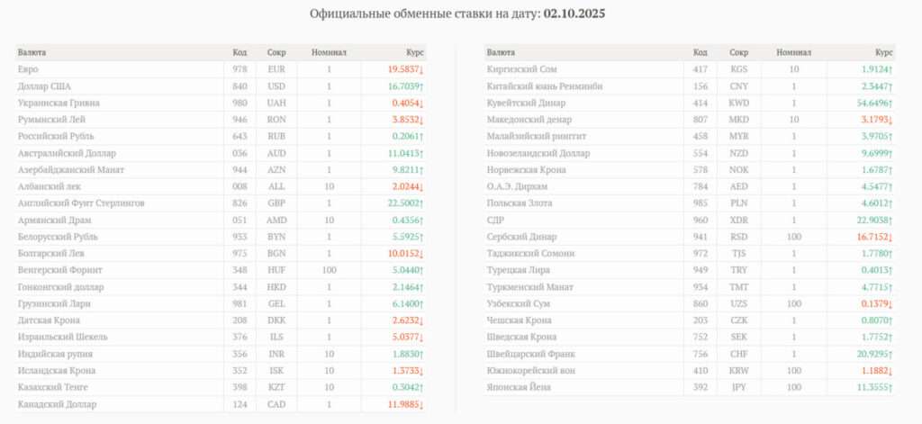 Национальный банк Молдовы представил официальный обменный курс валют на четверг, 2 октября.