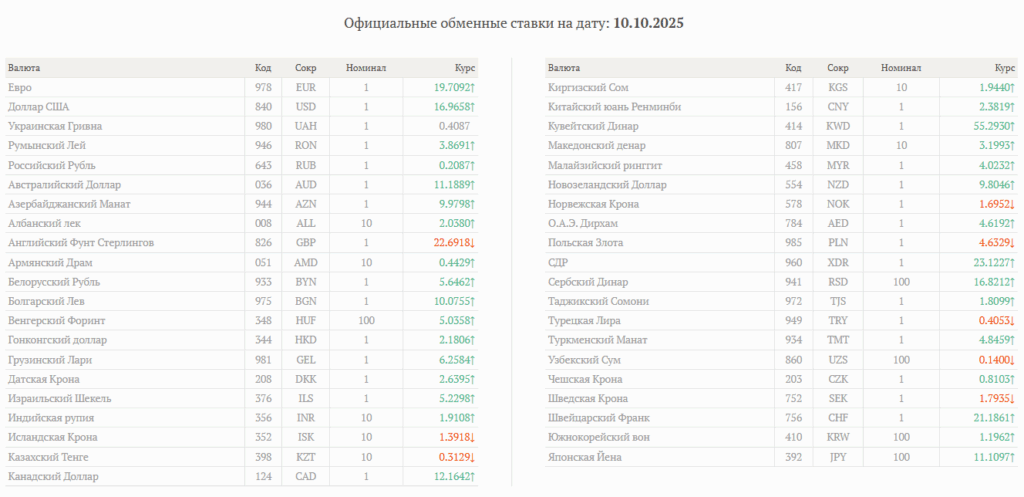 Национальный банк Молдовы представил официальный обменный курс валют на пятницу, 10 октября и выходные.