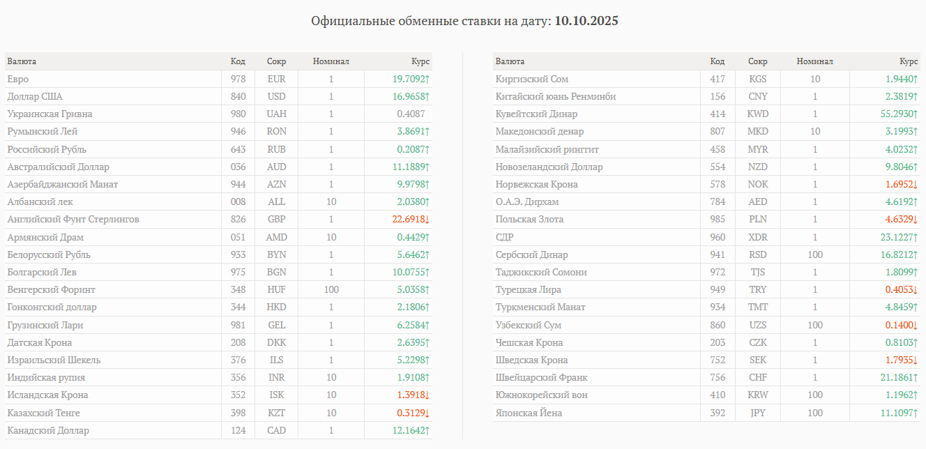Национальный банк Молдовы представил официальный обменный курс валют на пятницу, 10 октября и выходные.