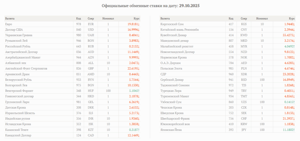 Фото — символ из архива nokta Национальный банк Молдовы представил официальный обменный курс валют на среду, 29 октября.