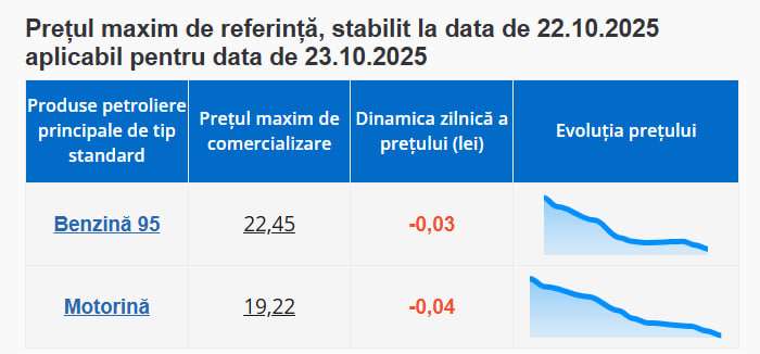 Национальное агентство по регулированию в энергетике (НАРЭ) объявило цены на топливо в Молдове на четверг, 23 октября.