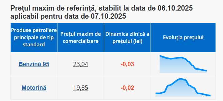 Бензин подешевеет на 3 бана и будет стоить 23,04 лея. Дизельное опустится в цене на 2 бана, его стоимость составит 19,85 леев.