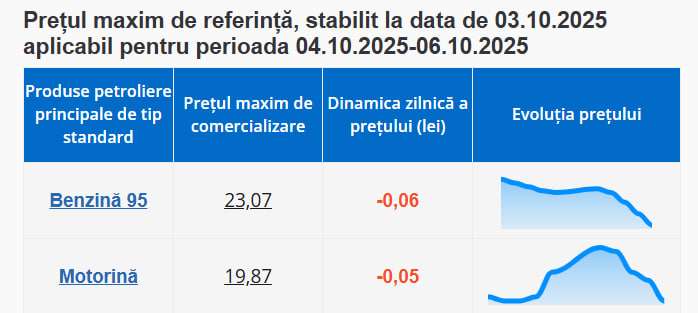 Бензин подешевеет на 6 банов и будет стоить 23,07 лея. Дизельное топливо опустится в цене на 5 банов и будет продаваться по 19,87 леев.
