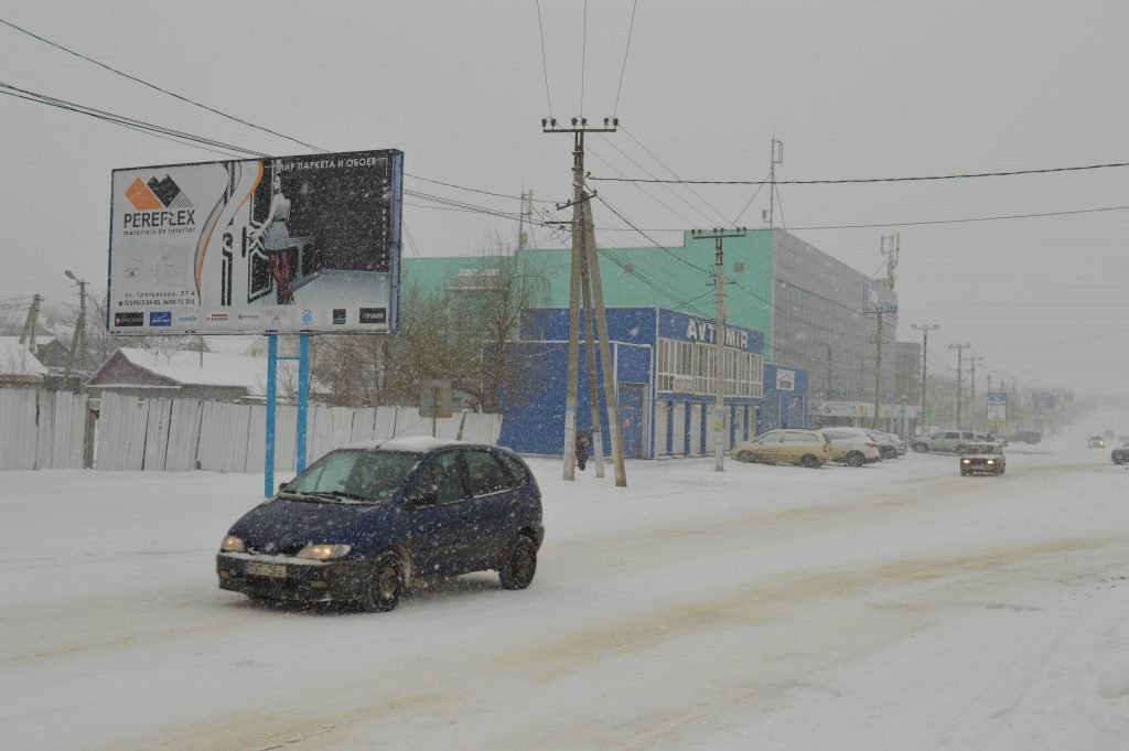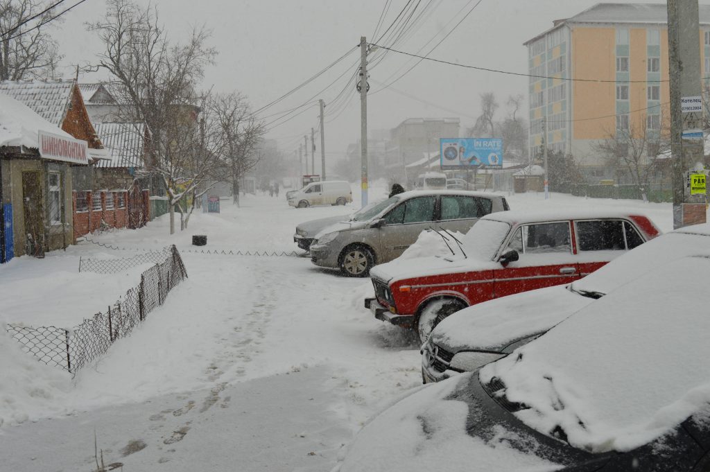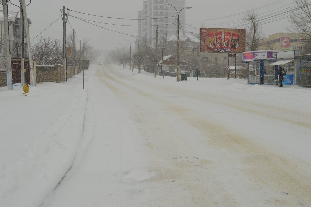 На улицах Комрата множество автомобилей заносит на дорогах. Видимость дорог для водителей затруднена. Пешеходы с трудом добираются до работы.