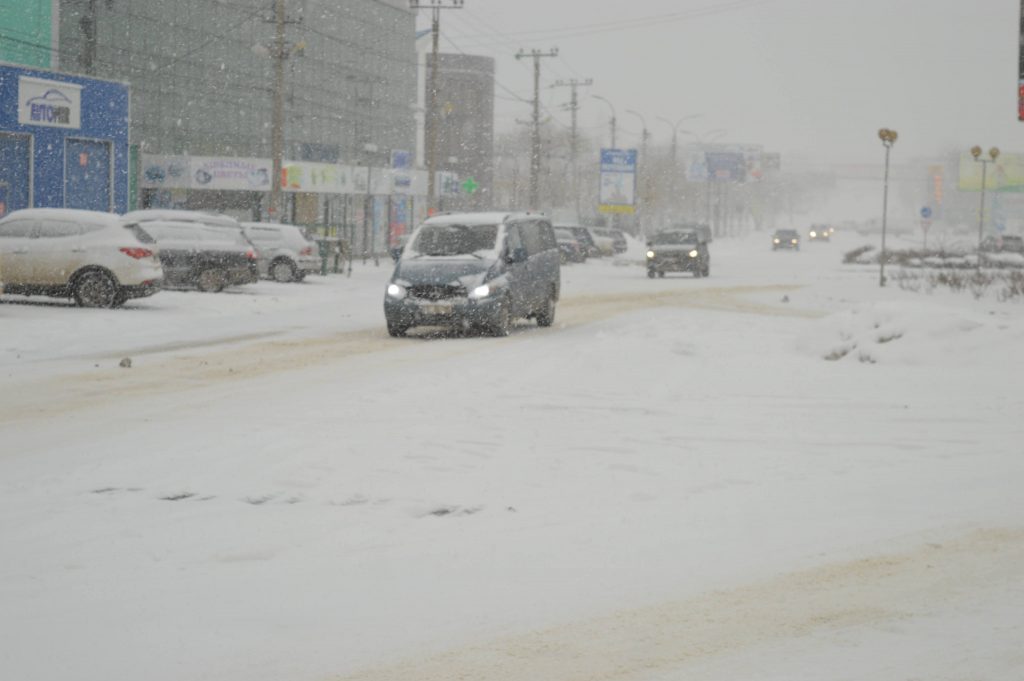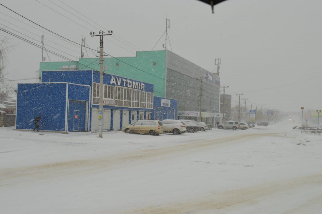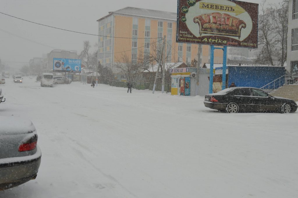 В Комрате затруднено движение транспорта из-за обильного снега. Видимость для водителей снижена.