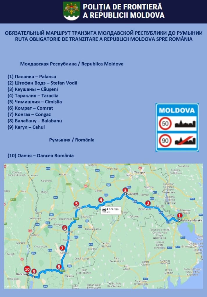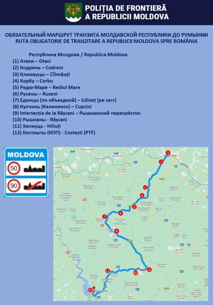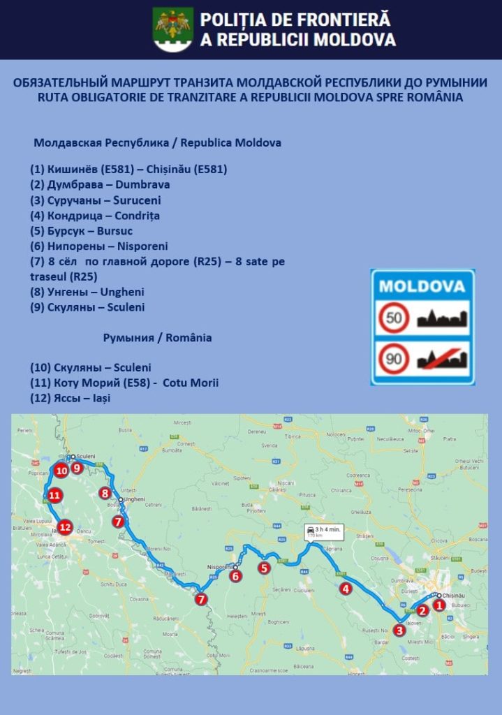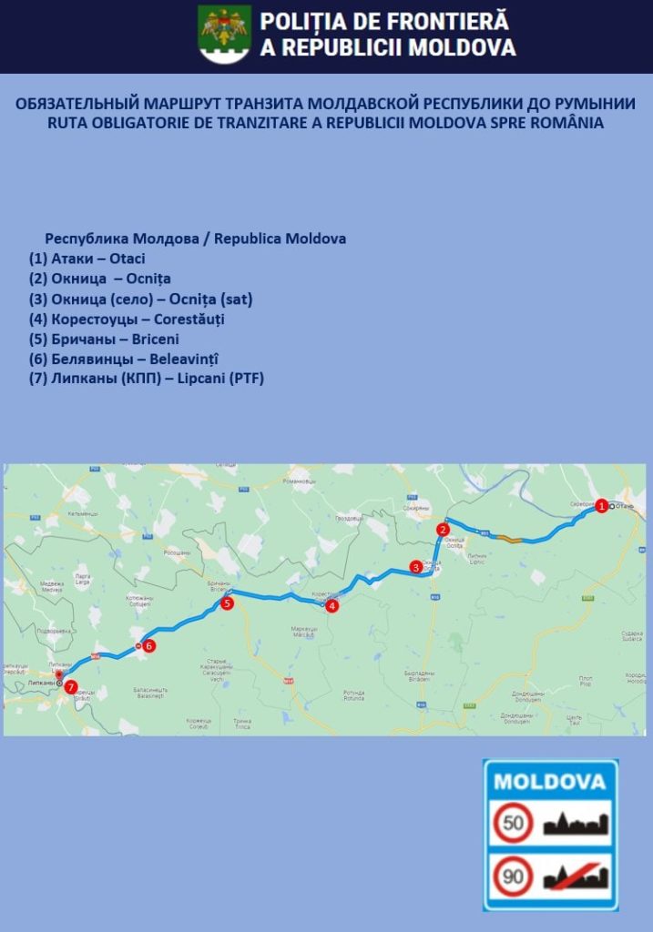 Помимо этого, Министерство внутренних дел совместно с Главной инспекцией пограничной полиции сообщает об установлении маршрутов для граждан, прибывающих из Украины на личных автомобилях и проходящих транзитом через территорию Республики Молдова в Румынию.