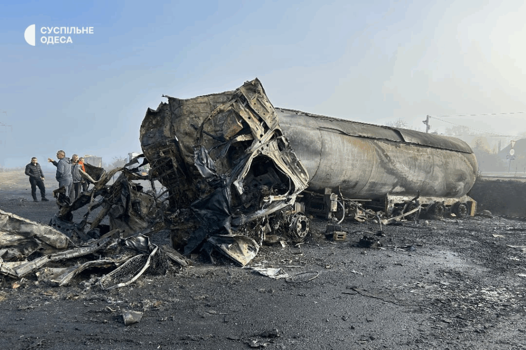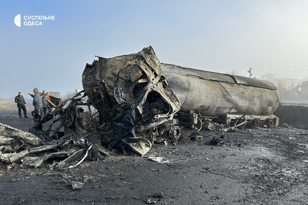 Последствия удара по Одесской области в ночь на 2 ноября. Обломки упали на автостоянку В ночь на 2 ноября Россия снова атаковала Одесскую область ударными беспилотниками. Удар пришёлся на автостоянку с грузовиками.