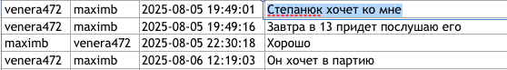Имя Степанюка фигурирует в переписке и позже — 5 августа, когда на следующий день у него должна была состояться беседа с Викторией Фуртунэ о его вступлении в партию.