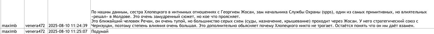 Куратор, как утверждается в утечке, отметил, что «каналами для решения проблем» могут быть член Высшего совета магистратуры Ливия Митрофан и бывший комиссар полиции Буюкан Лилиан Паскару. Напомним, что после приговора Гуцул член ВСМ Ливия Митрофан сообщала, что ей угрожали, как и Анне Кучереску. В 2024 году она утвердила состав специализированных антикоррупционных коллегий.