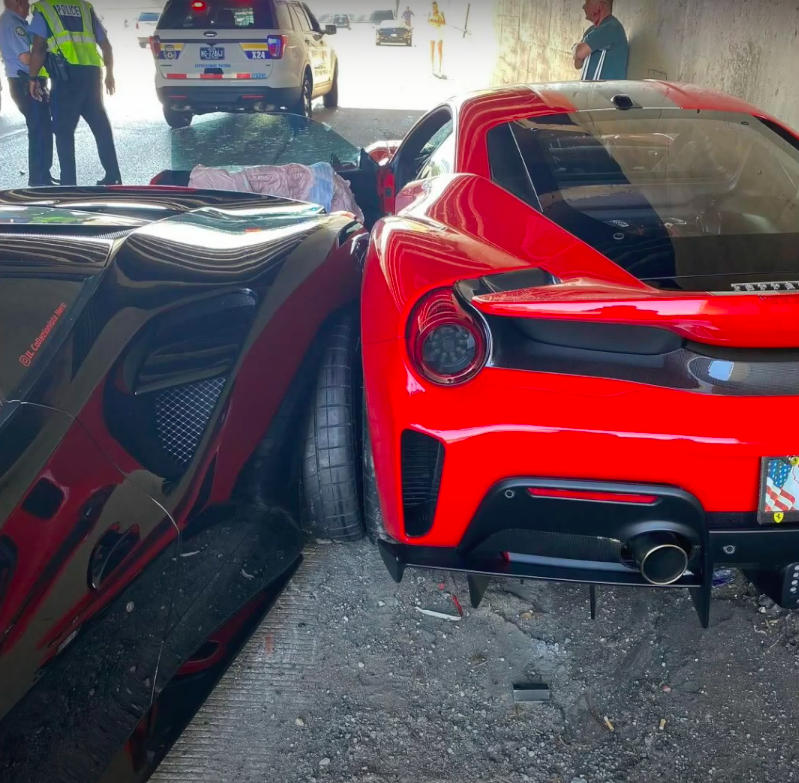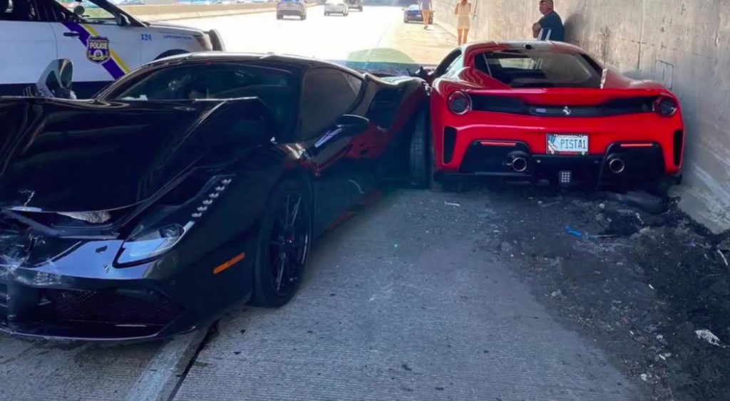 (Видео) Момент аварии с участием трех автомобилей Ferrari. Полиция проигнорировала нарушения водителей