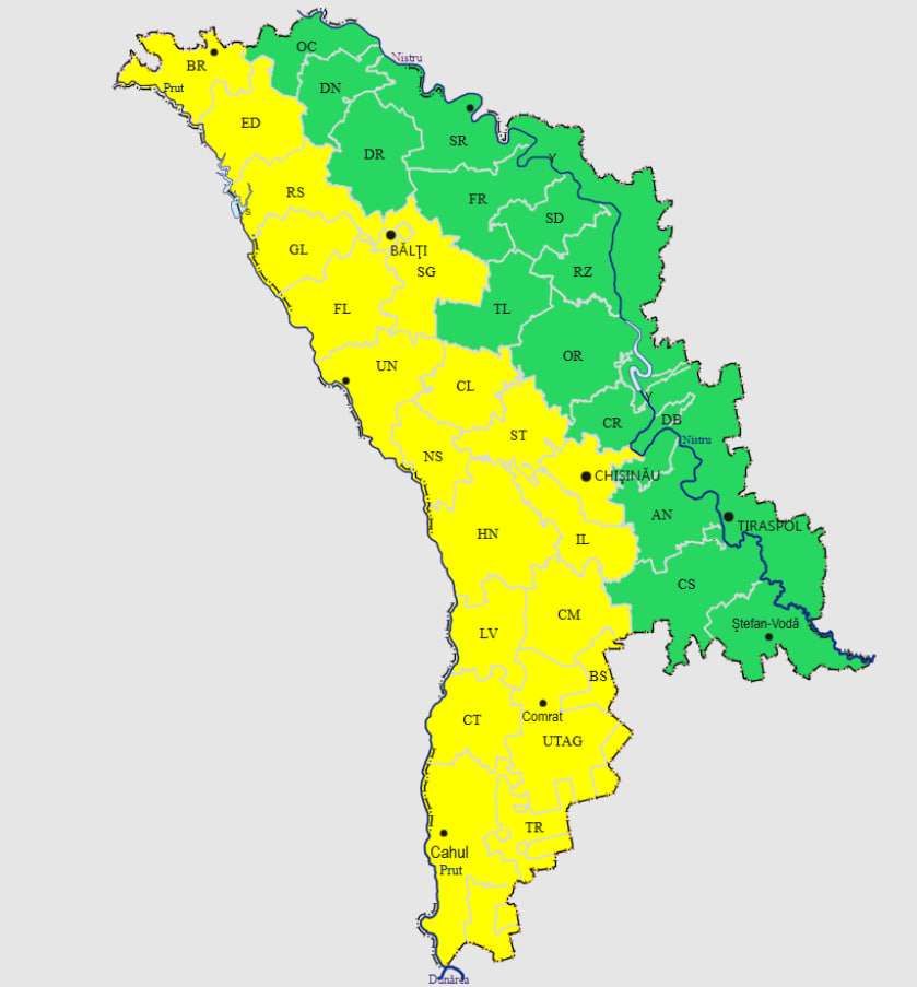 В субботу, 4 октября, на половине территории Молдовы будет действовать «жёлтый код» метеоопасности из-за проливных дождей, в воскресенье же, 5 октября, уже будет без осадков.